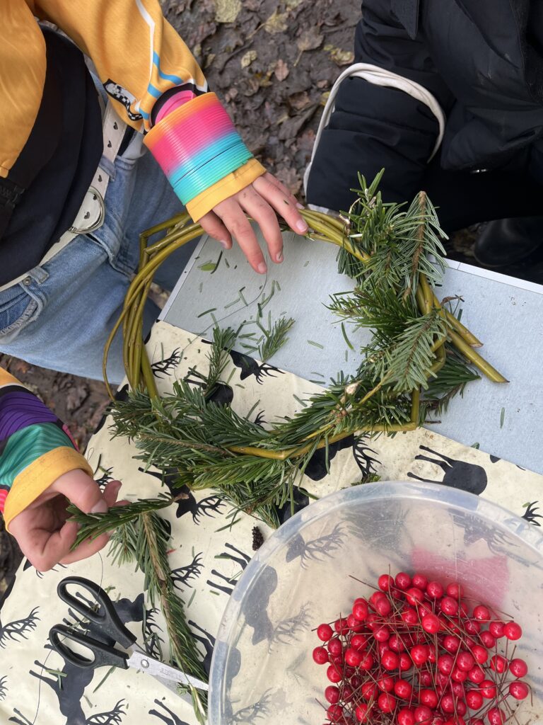 Children practised their Forest School knots and wrapped smaller decorations with wool to take home and adorn their homes through the winter months.