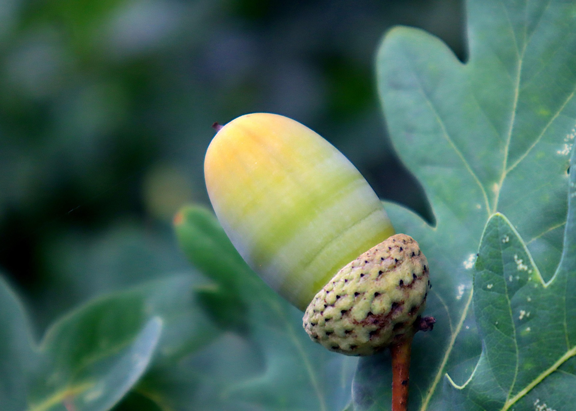Acorns are 2–2.5cm long, on long stalks and in cupules (the cup-shaped base of the acorn). As it ripens, the green acorn turns brown, loosens from the cupule and falls to the canopy below, sprouting the following spring.